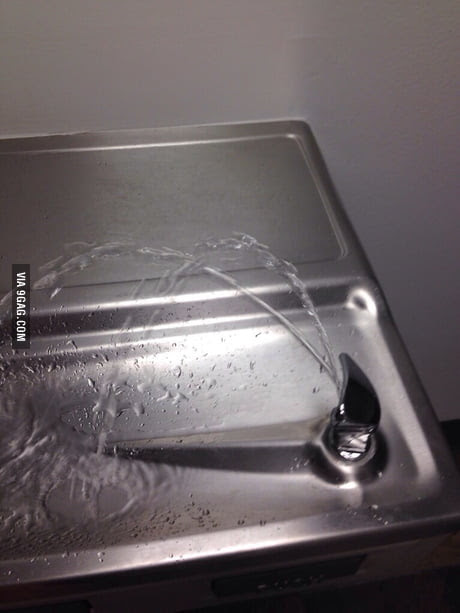 Don't be too hard on the croc, he just has no idea how to get the hot water running in this joint.