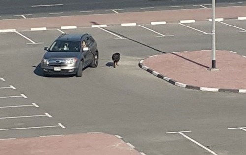 A man was spotted this week “walking” his dog around a parking lot in Dubai, the only problem was that he never got out of his car.