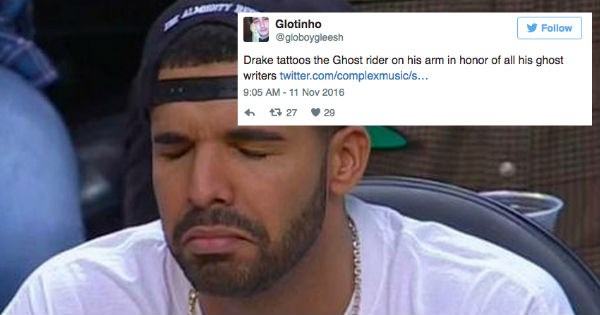 twitter,ghost rider,FAIL,Drake,tattoo,reactions