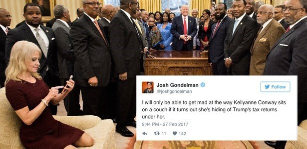 Yesterday, as that reality-TV gameshow host met with leaders from historically black colleges and universities, a picture was snapped of Kellyanne Conway kneeling on an Oval Office sofa, as if shoes on the couch is ok.