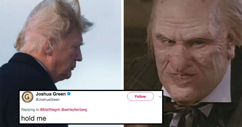 WARNING: YOU CAN'T UNSEE THIS. Donald Trump's hair took on the wind, and oh boy, did it take an L. Honestly, the internet's huddled together right now, quivering as shockwaves of disgust hit everyone. It's as if Tim Burton himself styled the back of that head. Proceed at your own risk.