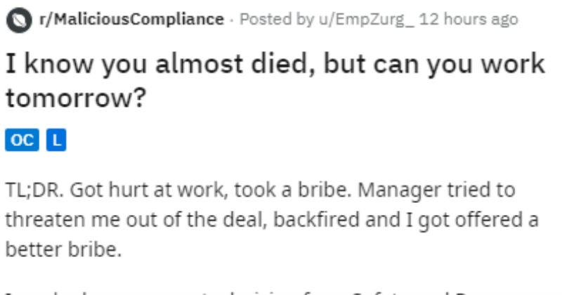 When this guy was in a crazy car crash that left him on light duty, his boss wanted him to get back on the job as if he wasn't injured at all. This didn't exactly work out in his boss's favor. Sometimes power tripping bosses get what's coming, like this boss who didn't allow sick days, or this incompetent owner who fired a special contractor.