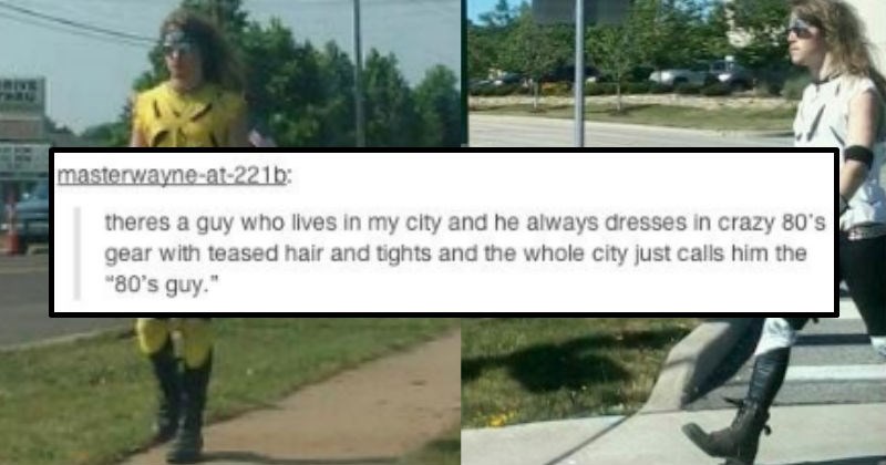 If you live in a big enough city, you likely have someone you refer to as "mowhawk guy" or "piano lady" or "roller blading guy." In this case we have a guy straight out of a Def Leppard video. If anything, this guy inspires feelings of nostalgia for the 80s and 90s. Every city has its own cast of local eccentrics who dance to the beat of their own drum. In this guy's case, that drum playing hair metal.