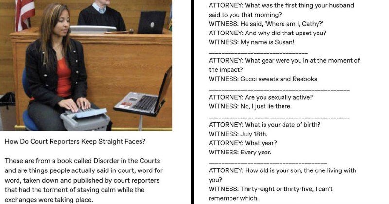 This fun thread sheds light on all the ridiculous things that court reporters overhear while on the job. It's a true wonder that they can keep a straight face. People come to court to air out all kinds of mind blowing grievances.