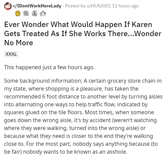 The wild Karen roams its hunting ground of the grocery store, stalking its prey, the customer service representative. The thing some Karens don't understand is that while employees are often beholden to their demands, other customers can be just as rude right back. For more Karen stories, here's a Karen that lied to a restaurant owner's face as well as a toilet paper hoarding Karen.