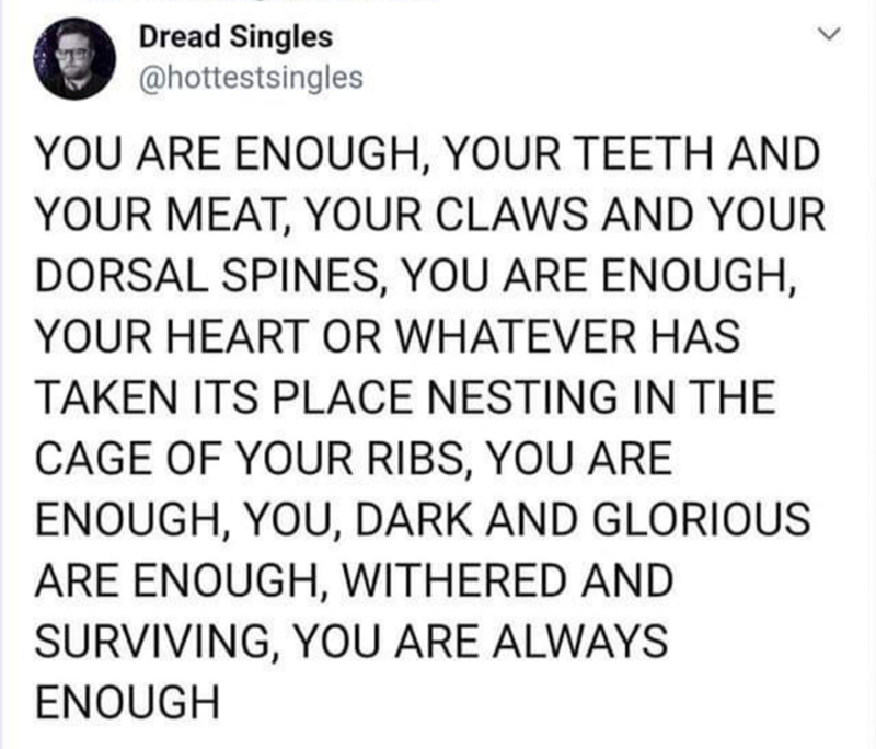 These tweets are packed with ominous positivity. They keep things a bit darker and also try to be playful. You'll probably either love them or hate them. Such is the way with interpreting aggressive displays of optimism.