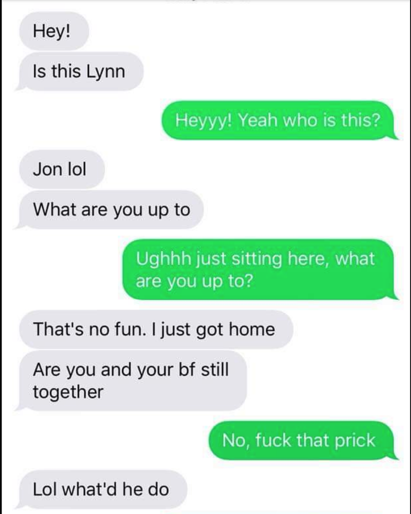 This dude unknowingly got a first class pass aboard the troll train. Yep, this is a good old-fashioned case of a wrong number getting tricked and toyed with. It sounds like the thirsty wrong number was giving off all kinds of red flags from the start. Seems like it's for the best that they weren't able to contact "Lynn."