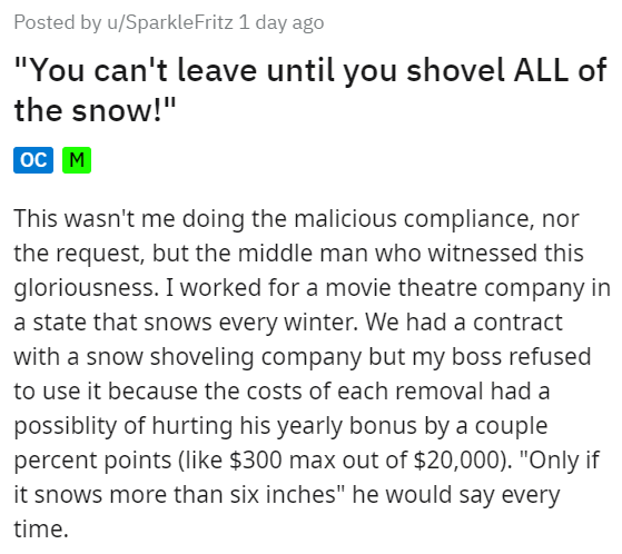 It's all too common to see an unhinged boss push their employees to their limits. This guy thought he'd save himself some money, but what he didn't know came around and ended up costing more than he expected. It's not uncommon that employees can enrage their bad bosses by following the actual rules.