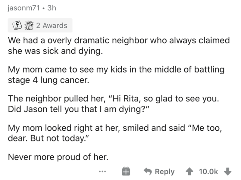 Someone on AskReddit got a thread going about people's most satisfying heat of the moment comments. Sometimes tempers flare, rational discourse gets tossed out the window, and someone mutters something that was completely unfiltered. Usually, what follows after that is some golden silence, and hopefully everyone just calming down and not escalating things further.