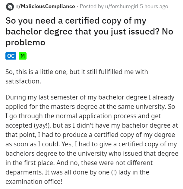 Bureaucracy can be a mind-numbing puzzle of forms to fill out and cranky people to deal with. Sometimes you get a real treasure of a human being who absolutely hates what they do, and dealing with them is pulling teeth. Here's one of those times. For another school themed story, here's Karen and Karen Jr getting outed for trying to cheat the school system.
