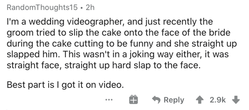 Someone on AskReddit got a fun and wild thread going about the cringiest things that people have done at weddings. Weddings just seem to bring all kinds of craziness out of people.