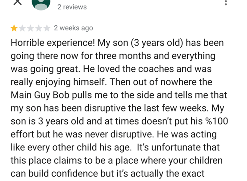 People that go out of their way to leave blatantly false reviews are the absolute worst. They're consciously working to bring down perfectly good business' reputations. It's garbage. Fortunately, this martial arts academy was ready to address the lies with pure masterful class.