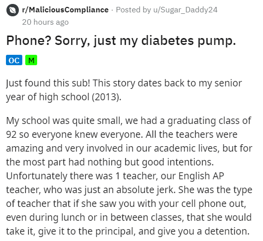 What is a diabetes pump for but injecting drama into a school? Sure this is technically entrapment, but the trap has been set. Not many students are given the opportunity to make their teacher look like an ass. Here are some wild junk teachers said as well as the story of an overly strict teacher telling a student not to speak.