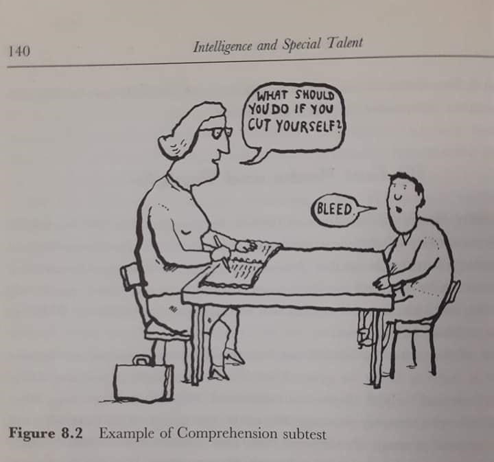 Cartoon - 140 Intelligence and Special Talent WHAT SHOULD YOU DO IF YOU CUT YOURSELF? BLEED Figure 8.2 Example of Comprehension subtest