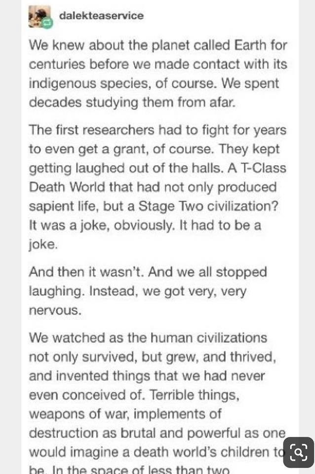 The internet has a whole lot of fun with the idea of humans and their role in the universe. Take for example this thread about how humans will pack bond with anything. It's in a way flattering to read sci fi about humans being intergalactic orcs or killing machines, and this one kicks off with a bang.