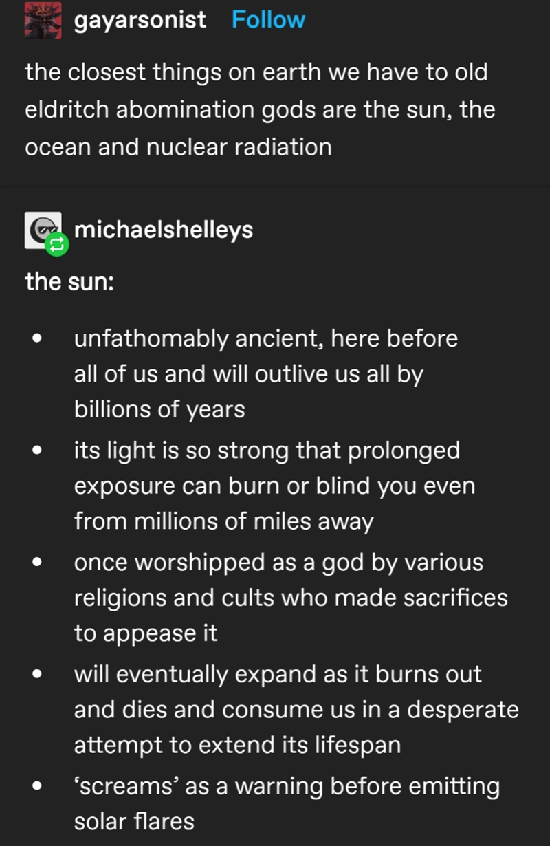 Tumblr Thread: Closest Things Earth Has To Eldritch Abomination Gods