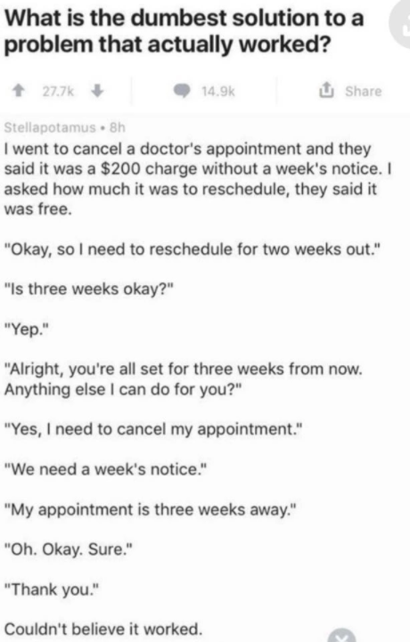 When we're told that something just can't be done, there's a powerful few of us who look at the rules in play and take another whack at it. It might err on the side of deception, but at the same time, it's not against the rules. For an awesome one, here's a student who took advantage of a dry ice loophole that made a mockery of a robotics competition.