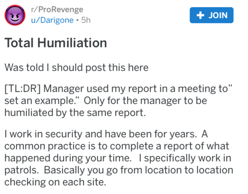 The fact that this manager ended up quitting after unsuccessfully trying to humiliate an employee, is the real icing on the cake. It's a true mystery how some of these incompetent managers end up being in the positions of power that they are. At least this particular manager was ultimately defeated.