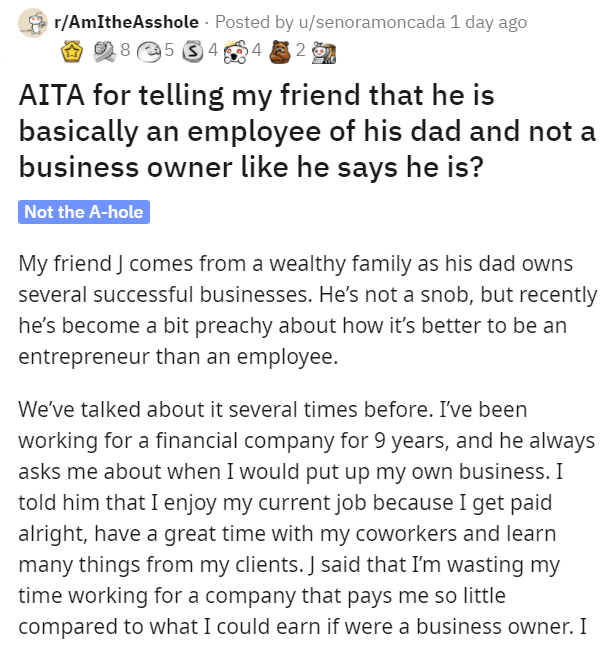 For some reason people get it in their heads that inheriting a business is the exact same thing as taking the huge risks and going the extra mile to start their own business. After getting enough "advice" from his "business owner" friend, this guy came down with some hard truths that internet was ready for. Here are some more cases of wealthy people being wildly out of touch.