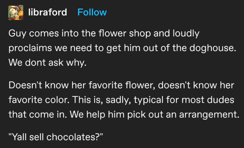 Real or not, just picturing this whole scenario where a dude walks into a shop like the one we have in this story, and the proceeds to cluelessly, stubbornly get his vegan girlfriend the last thing she'd want, is enough to get the laughs rolling. Some people refuse to take the help that's so graciously offered their way. This guy really should've just listened up when he had the chance. We can't imagine that the particular plate got him out of the doghouse at all. Check out some more gold from Tumblr with this family's heated Christmas vampire tradition.